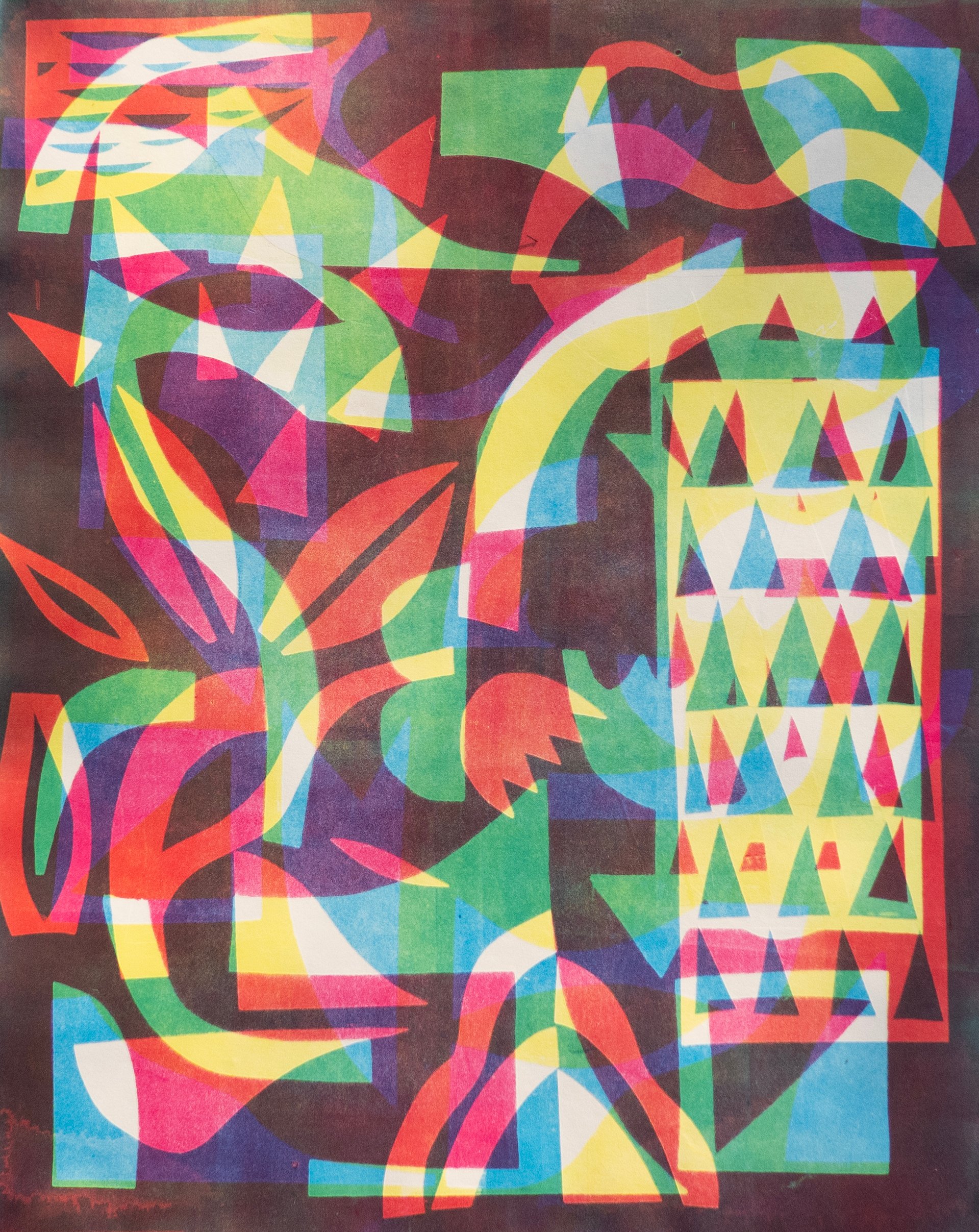 15x18" monoprint framed in 16x20" maple frame